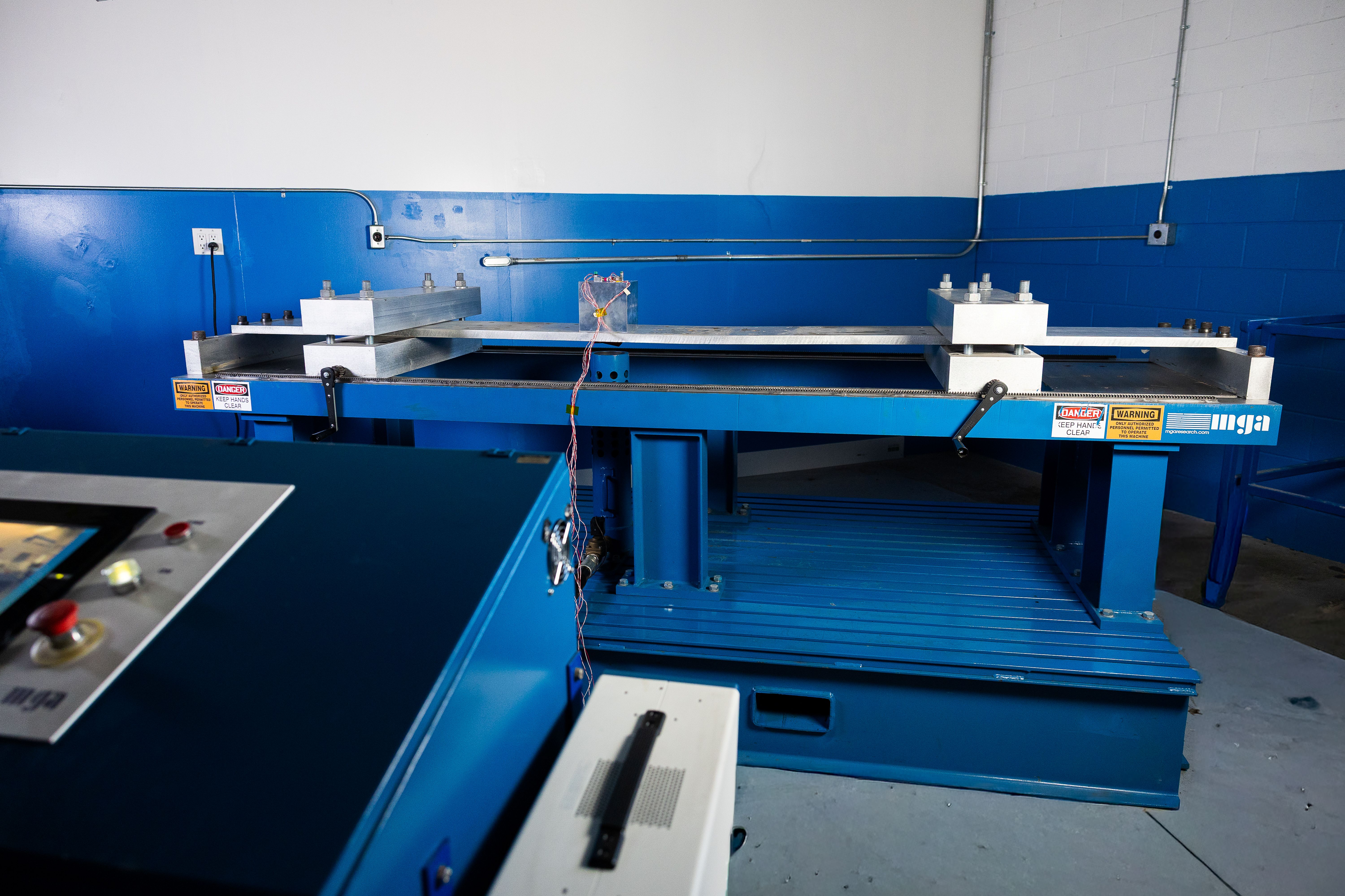 In addition to the lab updates, the renovation plan also concentrated on improving the work and meeting areas for both employees and customers. The office spaces have experienced a major visual overhaul, with updated LED lighting installed to allow for greater visibility and safety, and paintwork applied to reinforce MGA branding. The upgrades also introduced new security measures to limit access to testing areas and protect sensitive test articles. Together, these enhancements create a more professional and customer‑friendly environment while maintaining the facility’s existing workflow.
